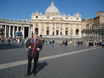 Joka kuukauden viimeisenä sunnuntaina Vatikaanin museoihin on ilmainen sisäänpääsy. Kello herätti meidät lomalaiset jo ennen aamuseitsemää. Hotellimme sijaitsi Piazza Vittorio Emanuele II:n laidalla. Nautimme pikaisesti italialaiseen tapaan niukan aamiaisen ja hyppäsimme kotimetroon. A-linjalla pääsimme suoraan Vatikaanin lähellä sijaitsevalle Ottavianon pysäkille. Ikävä kyllä muutkin turistit olivat opaskirjansa lukeneet. Jono museoihin oli käsittämättömän pitkä. Totesimme, että tänään ei olekaan meidän museopäivämme. Katsastimme Pietarinkirkon aukion ulkopuolelta ja palasimme vähin äänin joen yli keskustaan. Nyt meillä oli hyvää aikaa nauttia cappuccinot Campo de’Fiorin kukkatorilla. Varhain sunnuntaiaamuna siellä oli mukavan rauhallista.