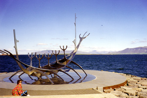 Kotimatkalla ajoimme kuunmaisematietä haltijakaupunki Hafnarfjörduriin, jossa vietettiin viikinkijuhlaa. Haltijoita oli runsaasti paikalla.