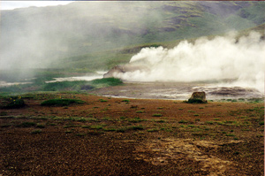 Geysir tai sen pikkuveli Stokkur suihkautti vesihöyryä muutaman minuutin välein 40 metrin korkeuteen – tosi mahtava.
