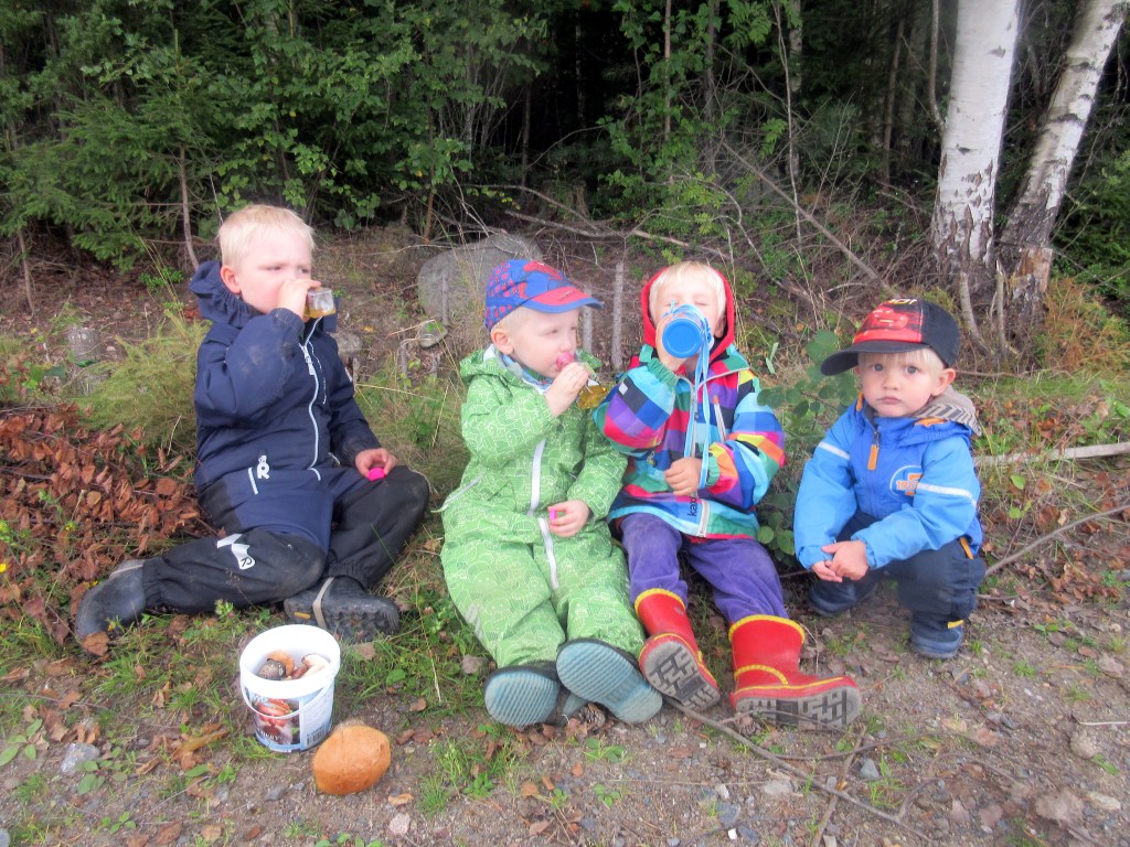 Pojat puuhastelivat kylmästä säästä huolimatta reippaasti pihalla. Kunnes sade patisti koko porukan sisälle.