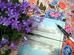 Toukokuun alussa pakkasin autoon Pekku –koirani, tietokoneen sekä printit harjoitustehtävistä. Lähdin hakemaan innoitusta mökiltä. Vanajavedessä jäät olivat vielä järvessä. Ensimmäistä kertaa minulla oli mahdollisuus seurata, miten tummanpuhuvat lautat sulivat suhahdellen ja järvenselkä avautui toukokuun puolessa välissä. Sinivuokot avasivat hennot nuppunsa kevätauringossa. Pihapiirin haravointi oli hyvää vastapainoa tietokoneen ääressä istuskelulle. Sain mökille seuraakin, kun Jaana -sisar tuli Pena –koiransa kanssa viettämään kuuden viikon sairaslomaa polvileikkauksen jälkeen. Onni onnettomuudessa, kerrankin meillä oli yhteistä aikaa rupatella ja lukea suvun vanhoja kirjeitä takkatulen ääressä. Aineistoa löytyi niin paljon, että eläkepäivillä voimme vaikka innostua sukututkimuksesta. Koirat juoksivat sydämen kyllyydestä pihapiirissä. Minä nautin vapauden tunteesta enemmän kuin olin etukäteen uskonutkaan.