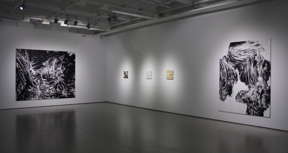 Näyttelyssä on esillä töitä kahdesta teossarjasta. Toinen sarja koostuu suurikokoisista tussiteoksista ja toinen pienistä alkydimaalauksista. Tussiteokset ovat syntyneet spontaanisti ilman luonnostelua, kämmenillä tussia levittäen ja kehon liikkeitä hyödyntäen. Tekniikasta johtuen sattumalla on ollut vaikutusta lopputulokseen, eikä teoksia ole korjailtu jälkikäteen.