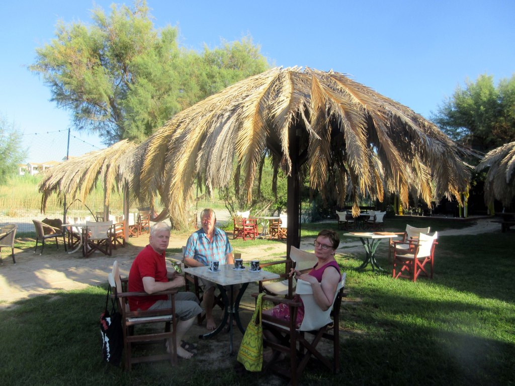 Rantatavernat tarjosivat virkistystä. Istuimme illan edellä puutarhassa kahvikupposten äärellä ja olimme tyytyväisiä rauhalliseen rantapoukamaamme. Täältä ei tarvitse lähteä muille rannoille.