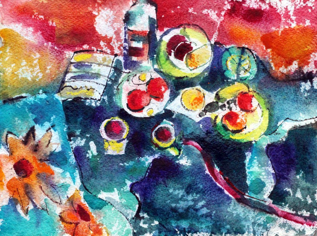 Täällä aurinkoiset vahvat värit siirtyvät helposti paperille.