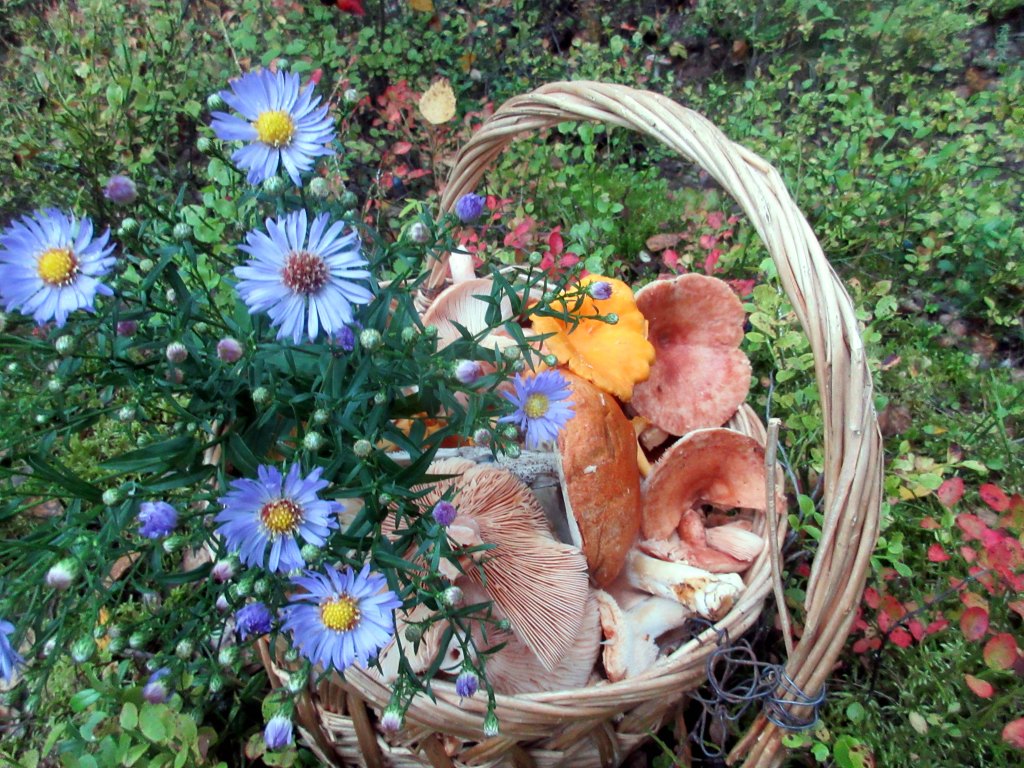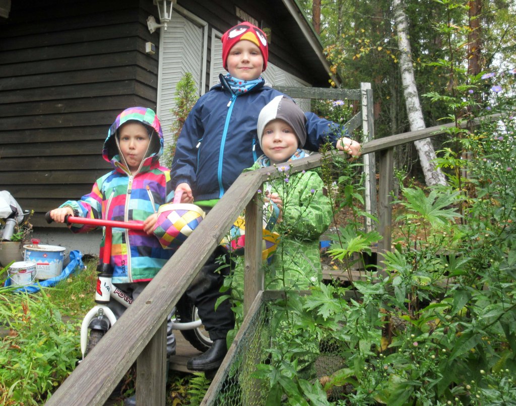 Me naiset ja pikkupojat teimme molempina päivinä metsäretken ja löysimme mukavasti sieniä. Visan viikonlopun kohokohta oli, kun hän näki viljapellolla leikkuupuimurin. Sillä kerralla matkassa ei ollut ensimmäistäkään kameraa ikuistamassa pojan onnellista ilmettä.