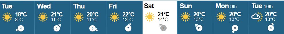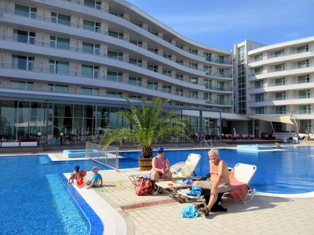 Meitä on aurinko hellinyt. Viikonlopuksi on luvassa sadetta. Silloin pitää kehitellä vaihtoehto-ohjelmaa. Hotellissamme on onneksi lämmitetty sisäallas.