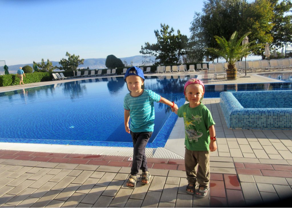 Pikkupojat ottivat ilon irti matkasta. He pörräsivät lentoasemalla ja viihtyivät mainiosti koneessa. Hotellihuoneen leveä sänky toimi hyvin tramboliinina. Minä ja Jussi vetäydyimme vähin äänin oman huoneemme rauhaan.