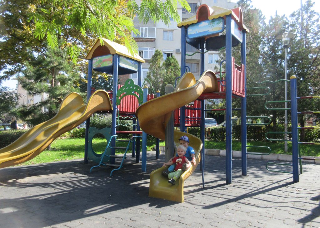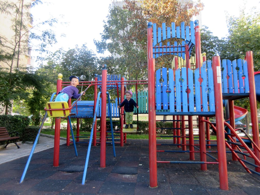 Löysimme hotellin läheltä kaksikin leikkipuistoa. Samu ja Miska keinuivat, kiipeilivät ja laskivat liukumäkeä.