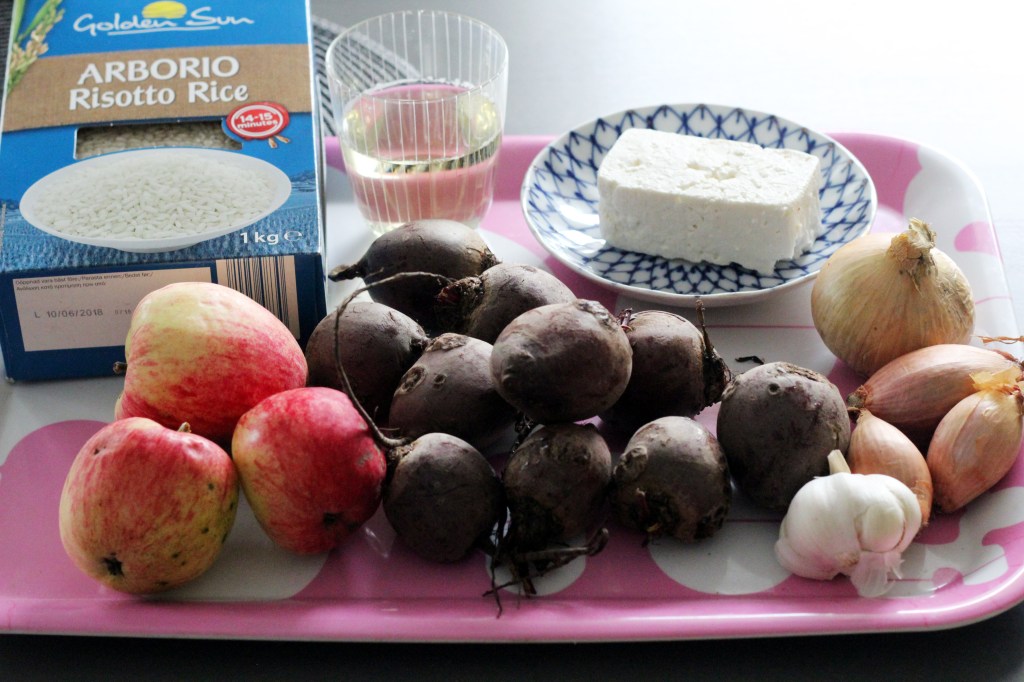 Yksi suosikkiruuistani on risotto. Olen kokeillut eri versioita mutta en muistaakseni punajuuririsottoa. Kuullotin pannulla raaoista punajuurista raastetta, pari salottisipulia, pari valkosipulin kynttä ja paloiteltuja kotimaisia omenoita. Kuullotin toisella pannulla risottoriisit oliiviöljyssä ja lisäsin kauhallinen kerrallaan kuumaa kasvislientä. Yhdistin lopuksi riisit ja punajuuret, maustoin tilkalla valkoviiniä, suolaa ja mustapippuria. Tarjoilin kreikanmatkalta tuomallamme vahvan fetajuuston ja kylmän valkoviinin kera. Maku oli vahva ja siinä oli syksyn tuntua. Suosittelen.