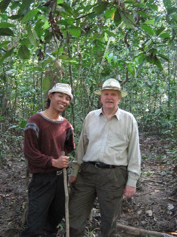 Veneretken varrella teimme pienen trekkingin maastoon. Aji otti turvaksemme tukevan kepin kaarmeiden ja skorppionien hatistamista varten. Silla han kolisteli puita metsassa kulkiessamme. Me saimme pienemmat oksat iilimatoja vastaan. Olimme todellisessa sademetsassa, ei millaan luontopolulla. Maasto oli mutaista, mina tuijotin koko ajan mihin astun. Kuvittelin, etta iilimadot ryomivat kosteikoissa. Vasta loppupuolella matkaa Aji naytti meille pensaiden oksilla luikertavia matoja. Sademetsa oli kuumankostea ja tosi reheva, aania taynna. Pysahdyimme hetkeksi, kun halusin aanittaa kaskaiden laulua. Taustalla Aji kolisteli koko ajan keppiaan. Aito soundi sekin. Luulimme selvinneemme retkesta kunnialla siihen asti, kun tuli aika riisua vaelluskengat ja sukat. Jussin nilkka oli veresta punainen. Yksi iilimato ehti tehda temppunsa. Laakitsimme uhria asiaankuuluvasti. Tukevan aamiaisen jalkeen lahdimme paluumatkalle mukava aussipoika Jessie kyydissamme. Nuori mies oli aito reppuretkeilija. Han oli vuoden kierroksella. Poika oli kaynyt jopa Mongoliassa ja pohjoismaissakin. Han kommentoi, etta skandinaviassa rahat kuluvat liian vilkkaasti sormien lapi. Kuulostaako tutulta?’