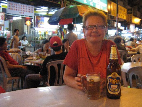 Olemma paasseet tuoreiden merenherkkujen makuun. Taalla voi syoda halvalla (lounas 15 RM eli alle 4 euroa kahdelta), illallisemme maksoi vahan enemman eli 150 ringgitia. Maistelimme punapilkkuista akvaariokalaa ja mehevia tiikerirapuja, kaikki runsaan valkosipulin ja kermakastikkeen kera. Puolet laskusta tuli australialaiseta punaviinista, tama ei todellakaan ole viinimaa. Mutta kerta kaikkisen maukasta oli. Emme paase laihtumaan..