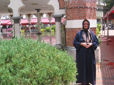 Mita sanotte, pukeeko muslimiasua minua? Kavimme eilen Kuala Lumpurin vanhimmassa moskeijassa, meidat molemmat puettiin kaapuihin, ennen kuin paasimme kieramaan alueen – ulkoapain. Mina totesin vajaan puolen tunnin kierroksen jalkeen, ettei minusta ole muslimiksi, asu oli tukahduttavan kuuma! Taalla kelit sen kun lampenevat, turistit kulkevat froteepyyhe olkapaalla, arvaatte varmaan miksi.