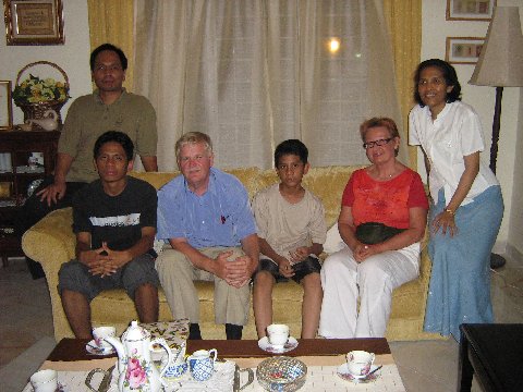 Arvostimme kutsua Roslin kotiin, silla aasialaiset tapaavat vieraitaan tavallisesti ravintoloissa. Rosli asuu perheineen Kuala Lumpurin keskustan ulkopuolella kauniissa upouudessa omakotitalossa. Isantavaki otti meidat sydamellisesti vastaan. Emanta kiitteli tuliaislahjasta asiaankuuluvasti. Han kertoi olevansa huono kokki, mutta illallinen, jonka han oli itse valmistunut, oli kerrassaan herkullinen. Meille tarjottiin vihreita kasviksia, intialaista kalacurrya, thaimaustettuja tuoreita rapuja seka malesialaisia lihapaloja. Jalkiruuaksi oli tuoreita hedelmia ja paikallista kahvia. Isantavaki soi malesialaiseen tapaan luontevasti sormin. Mina olin kuvitellut, etta vain intialaiset syovat niin. Aina oppii uutta. Ilta oli mukavan lamminhenkinen. Perheen neljasta lapsesta (kaksi tyttoa, kaksi poikaa) vain pojat olivat kotona. Lupasimme omasta puolestamme tarjota suomalaisen illallisen, jos he tulevat meille pain vieraisille.