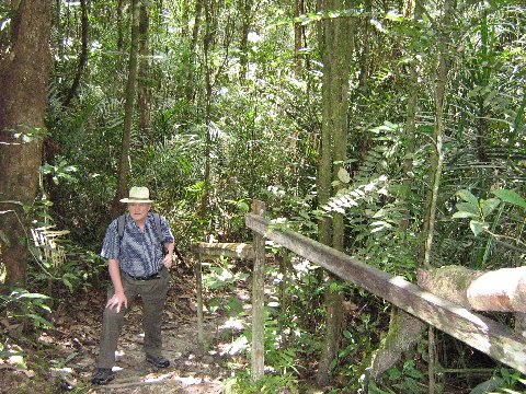 Suoriuduimme nopeasti viidakkopolulle ennen sadetta. Silau-Silau trail kulki puron vartta tiheassa tropiikissa. Meita oli varoitettu iilimadoista, onneksi emme tormanneet. Viidakko oli aania tulvillaan. Siella sirisi ja torahteli, puro solisi. Hieno kokemus.