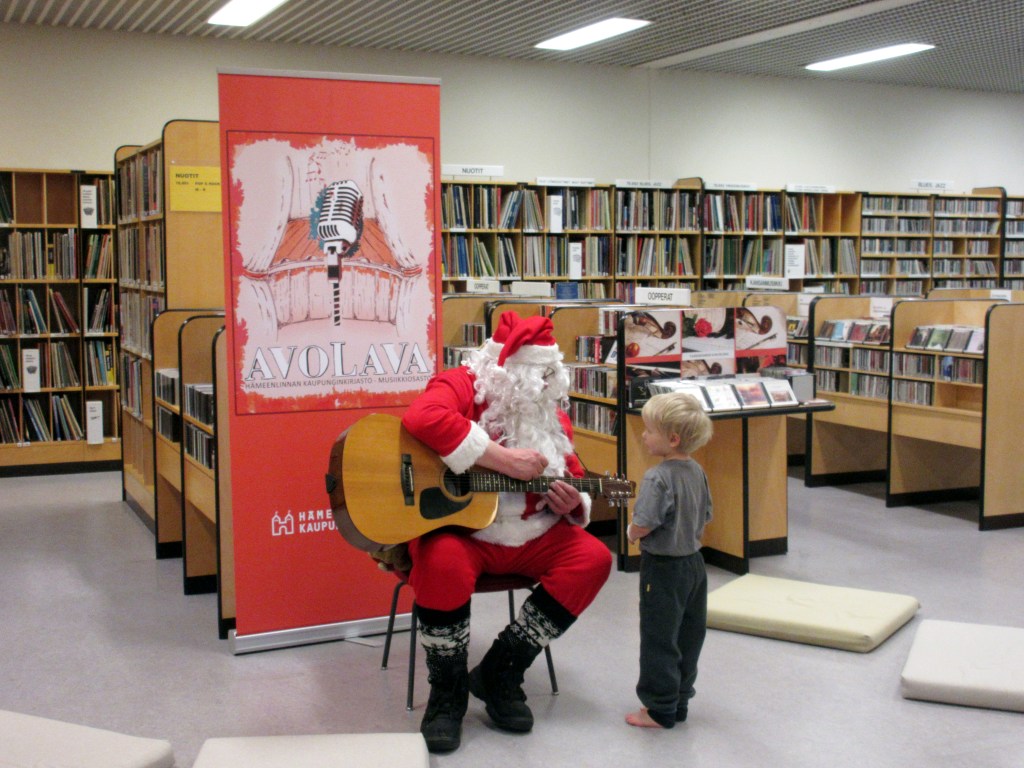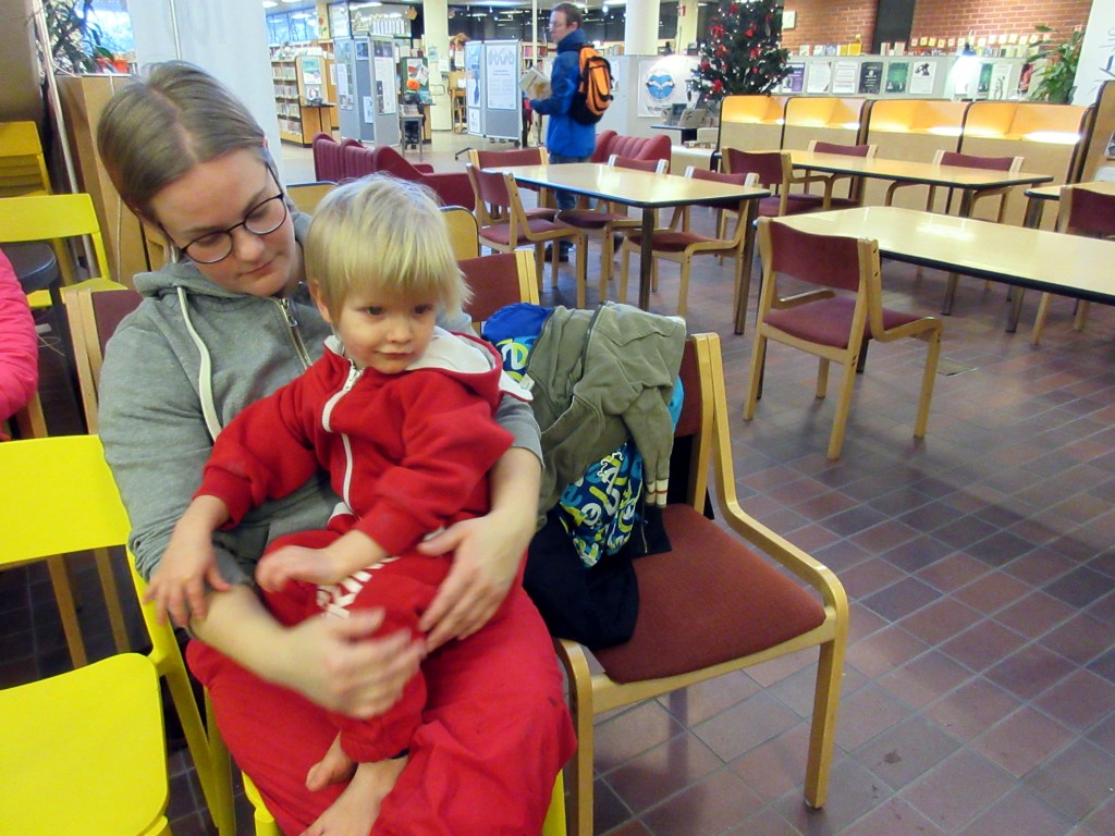 Torstaina oli jännittävä päivä. Hämeenlinnan kaupunginkirjastossa vieraili joulupukki. Samu kävi aivan oma-aloitteisesti kertomassa, mitä toivoo joululahjaksi.