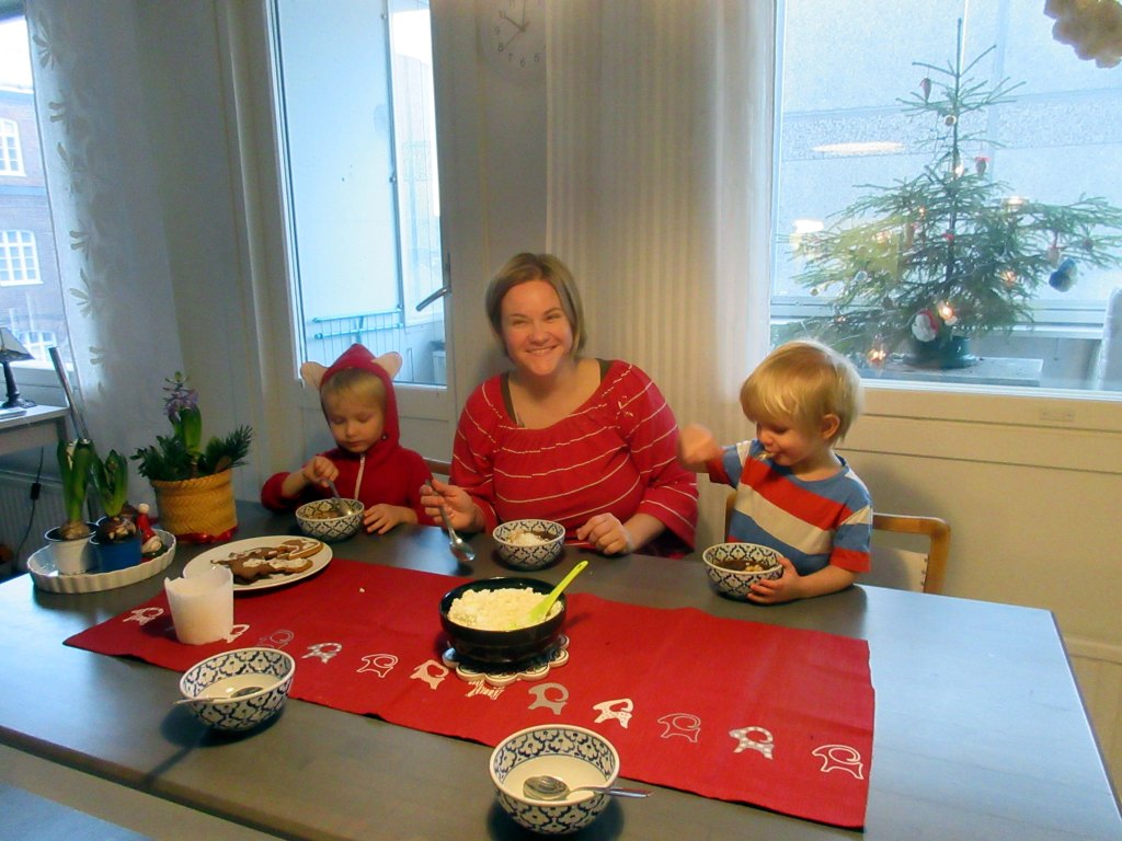 Jouluaaton vietto sujui perinteikkäästi. Kalapöydän antimet olivat kovasti aikuisten makuun. ”Tämä ei ole oikein lastenruokaa”, Samu kommentoi. Maisteli kuitenkin savukalaa ja perunoita.