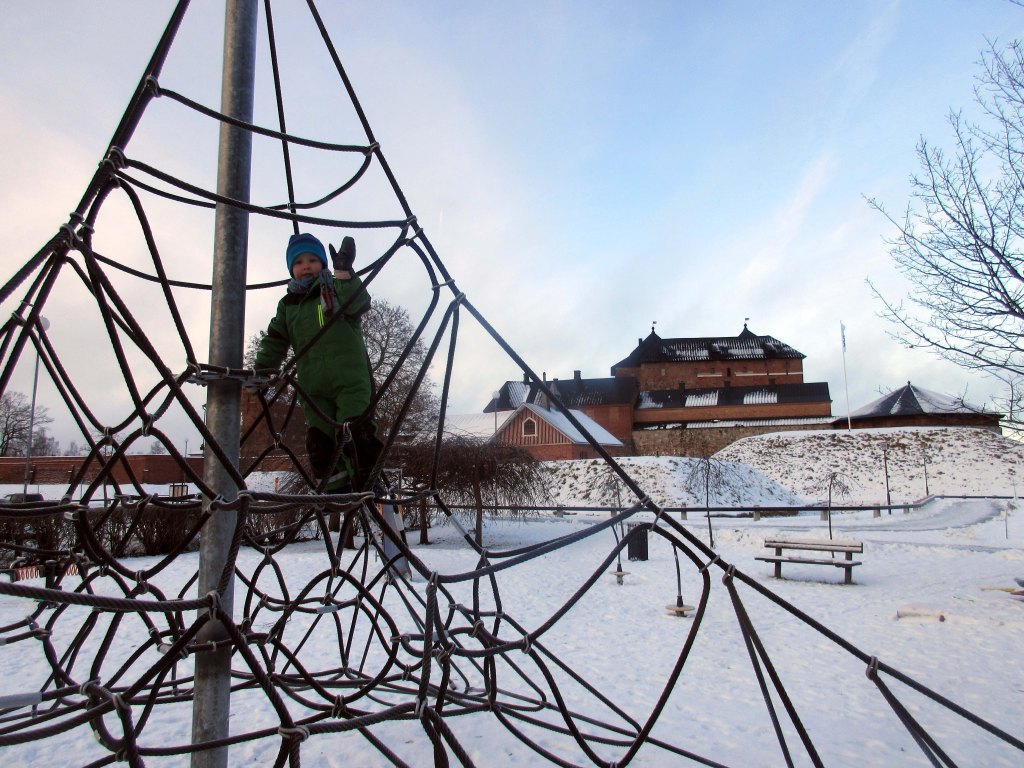 Pojat viihtyivät linnanpuistossa, jossa oli enemmän virikkeitä kuin läheisessä ystävyydenpuistossa. Tänään nautimme valmiista jouluruuista lämmitettyinä.