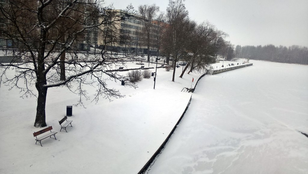 Mittarissa ei ole enempää kuin -7 astetta, mutta pureva tuuli sai nenän punaiseksi ja sormet ja varpaat jääkalikoiksi. Lunta ei ole kuin nimeksi. Kaupungin kadut on hyvin hiekoitettu eikä liukastumisvaaraa ole. Onneksi. Sekin aika vielä tulee. Minä olen varautunut nastakengillä. Ne ovat lenkillä erinomaiset, mutta sisätiloissa epämukavat.