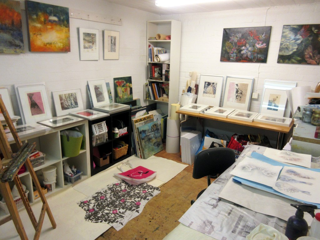 Tälle viikolle on kertynyt kollaasiaskartelun lisäksi useita työpäiviä grafiikanpajalla. Olen päivystänyt galleriassa ja valmistellut seuraavaa omaa näyttelyä. ”Tropiikissa tuulee” avautuu maaliskuussa Vihdin pääkirjastossa Nummelassa. Vien suurimman osan Jorvin sairaalan näyttelytöistä kirjaston aulaan. Mutta sen lisäksi käytössäni on 35 kappaletta lasivitriinejä. Suunnitteilla on laittaa jokaiseen yksi matkoilla maalaamistani akvarelleista. Niitä on tarpeeksi, mutta ennen kuin ne voi laittaa näytteille, puuhaa riittää. Anna-tytär kävi opettelemassa paspanleikkuun jaloa taitoa täällä Hämeenlinnassa. Hän oppi nopeasti ja sai leikattua ensimmäiset kymmenen. Odottelen jatkoa ensi viikolla. Paspojen lisäksi tarvitaan vielä taustapahvit, sillä en kehystä töitä. Niidenkin leikkaaminen on iso urakka. Jussikin on osallistunut kiitettävästi tähän perheprojektiin.