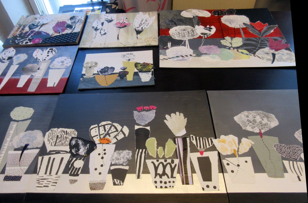 Sain postitiivista palautetta kollaasi-iloitteluistani. Tosin opettajan mielestä kaikki työt eivät olleet valmiita – ei minunkaan mielestäni. Osa oli materiaalikokeiluja. Hyvä kuitenkin, että ensimmäinen kurssi on nyt ohi ja odotamme kaikki jännittyneinä arvosanoja.