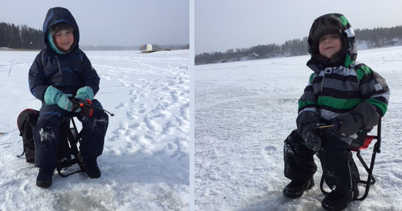 Sähköpostissa odotti kuvat poikien pilkkiretkeltä. Tarina ei kertonut, tuliko kalaa. Tuoretta kalakeittoa on kuitenkin luvassa, sillä jääkaapissa heitä odottaa komea made, jonka Immo toi tuliaisiksi Kuhmoisista.