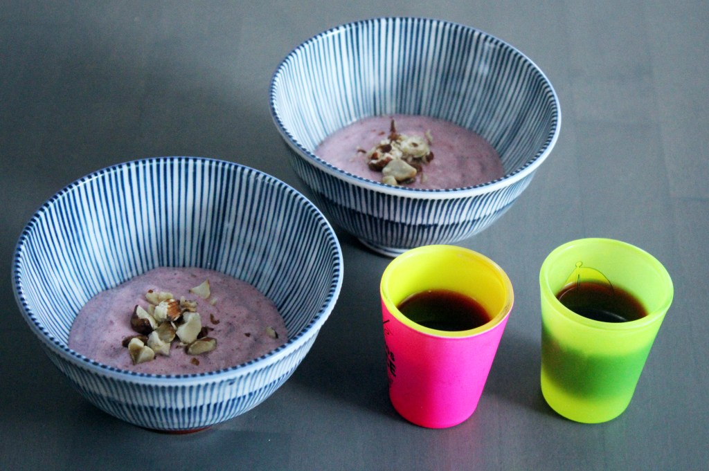 Jälkiruuaksi sekoitin pakasterasiallisen viimekesäisiä villivadelmia turkkilaiseen jogurttiin. Koristelin terveellisillä rouhituilla pähkinöilla. Tarjosin herkun Kaizun vuosikertamustaherukkaliköörin kera. Annoksessa oli vitamiineja ja makua kerrakseen.