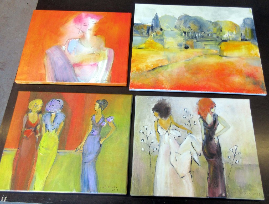 Sain eilen yhden kevään taideprojekteista päätökseen. Viimeistelin Tavastialla maalauskurssin työt. Niitä oli kuusi ja neljä niistä jäi huhtikuussa ripustettavaan käytävänäyttelyyn. Minä en pääse silloin paikalle. Jätin opettajille vapaat kädet.