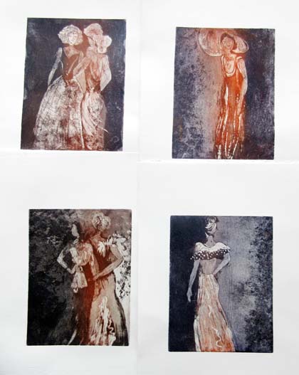 Vedostin tänään grafiikanpajallamme viikonloppuna työstämäni kuparilaatat. Osa onnistui, osa ei. Grafiikka on aina yhtä arvaamatonta. Ehkä siinä piilee sen viehätys. Välillä tulee onnenkantamoisia. Useimmiten ei.