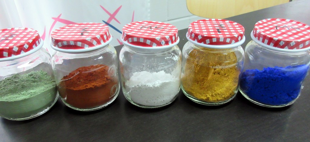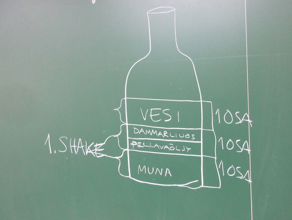 Nyt Salla opettajamme teki vähän erilaisen emulsion, kuin se mihin olen tottunut. Tässä oli lisänä myös dammaria, joka antaa kiiltoa. Suurin osa kurssipäivästä kului mdf-laattojen ja kangaspohjien pohjustukseen. Kaikki piti käsitellä kahteen kertaan. Koska meillä on iso ryhmä, jonoa riitti. Liitupohjakattiloita oli vain yksi.