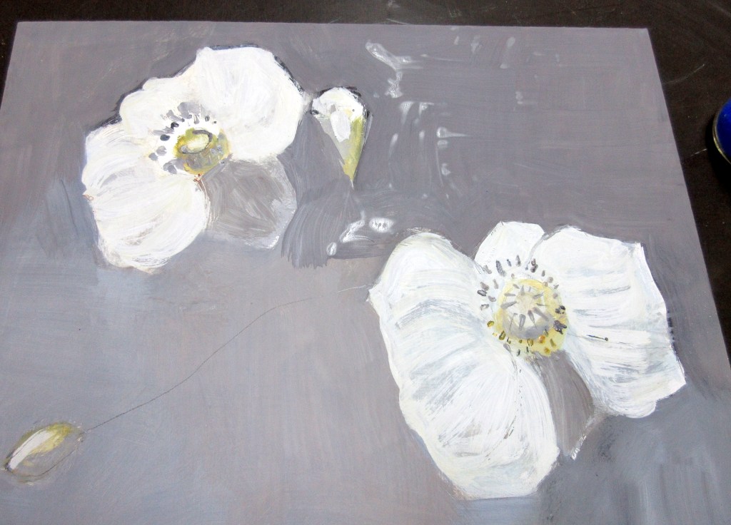 Pääsimme toki maalaamaankin. Salla heijasti luokkaan mallikuvan. Sitä sai käyttää maalauksen lähtökohtana. Olin oikein tyytyväinen, että aloitimme kukilla. Viikon kuluttua jatkamme.