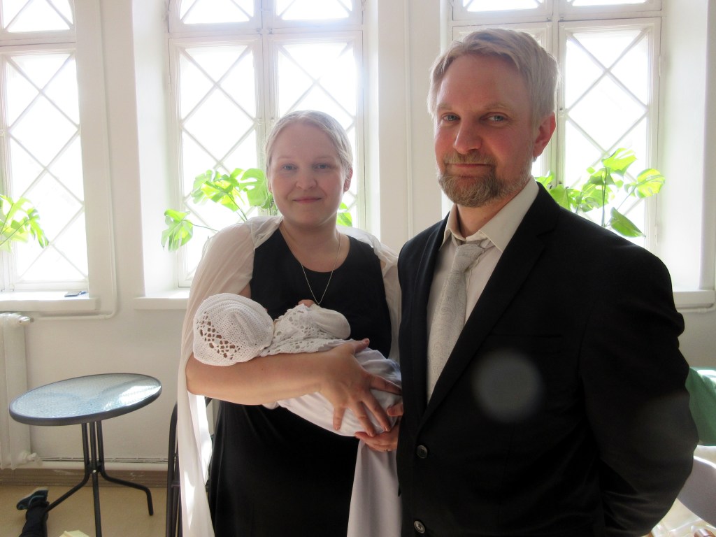 Pikkuneiti Ulpu Eevi Amalian kastetilaisuus Kauniaisten kirkossa oli juhlallinen. Messuvieraat osallistuivat kirkkokahville. Tarjolla oli Lauran ja hänen Leila-äitinsä leipomuksia.