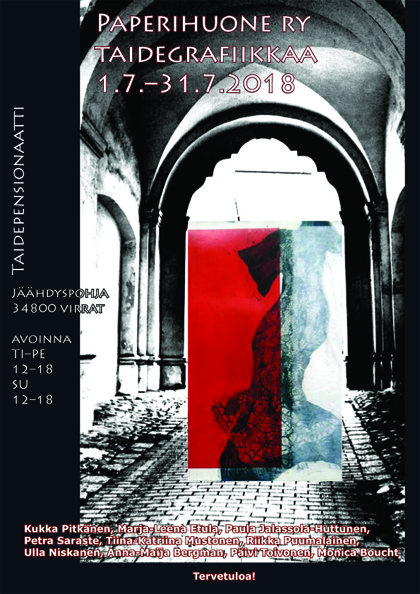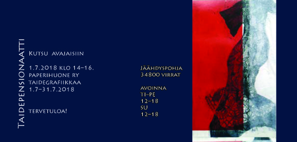 Me Paperihuone ry:n graafikot saimme kutsun Virroille. Ripustamme näyttelyn heinäkuun ajaksi Taidepensionaattiin. Saa poiketa! Puheenjohtajamme Petra taiteili viettelevän kutsun ja julisteen. Neito nimeltä ”Hunajainen” on minun käsialaani.