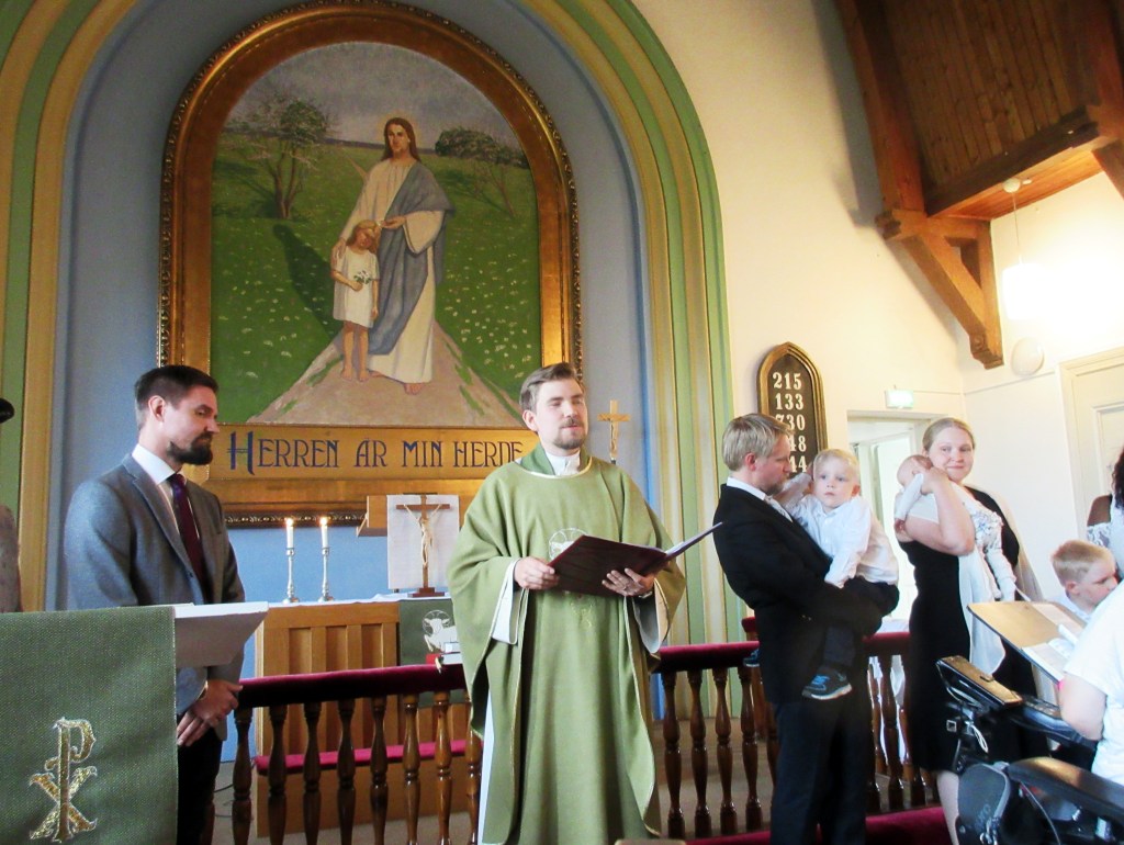 Päivä oli aurinkoinen ja Kauniaisten kirkossa kaunis valo. Pyhän Tuomaksen luterilainen seurakunta sai uusia jäseniä, kun pastori Timo Marttinen kastoi myös Otso Ilmarin ja Visa Henrikin.