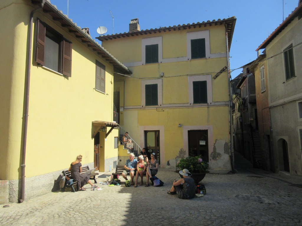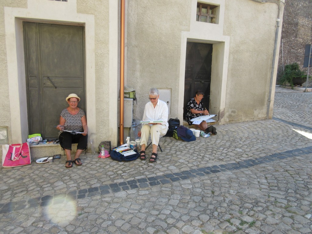 Olemme Nazzanon ihka ensimmäinen turistiryhmä ja majapaikassamme ihka ensimmäinen vierailijaryhmä. Saimme heti paineita, sillä ensi viikon keskiviikkona meillä on akvarellinäyttely kaupungintalolla. Ei siinä mitään, mutta ensin ne työt pitää maalata.