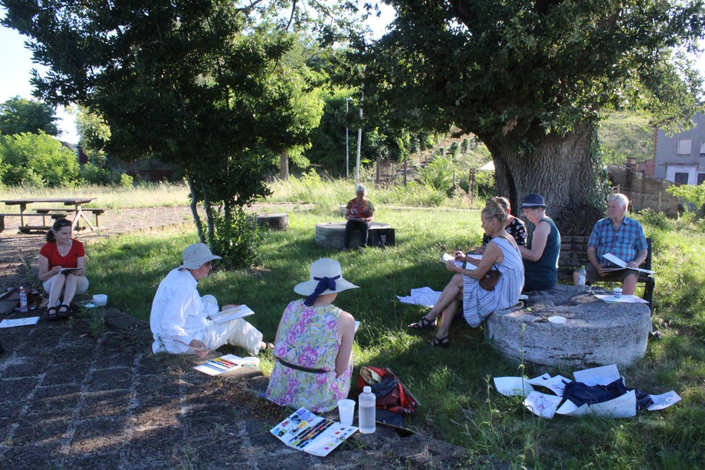 Saimme tehtäväksi tutkia sitä (tai jotain muuta) kohdetta päivänvalossa, iltavalossa ja aamuvalossa. Se tarkoitti, että olisi pitänyt lähteä maalaamaan vielä päivällisen jälkeen. En tiedä lähtikö kukaan. Minä en ainakaan. Kuuma päivä ja tukeva ruoka vaativat veronsa. Viiniäkin tuli nautittua kohtuullisesti.