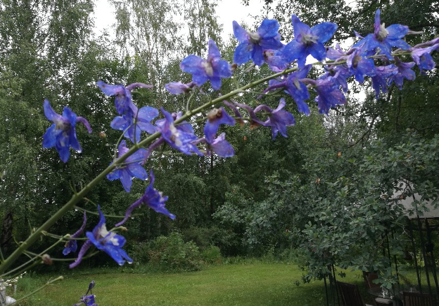 Meillä on ollut oikeasti järkyttävän kuumaa ja kuivaa. Saimme tänään vedettyä letkun pihaan. Kukat virkistyivät silmissä.