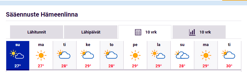 Helle jatkuu ja trooppiset yöt. Anna ja pojat nukkuvat edelleen teltassa. Me Jussin kanssa hikoilemme sisällä. Loppuviikoksi on luvassa viilenevää. En olisi uskonut, että odotan sellaista ilmiötä.