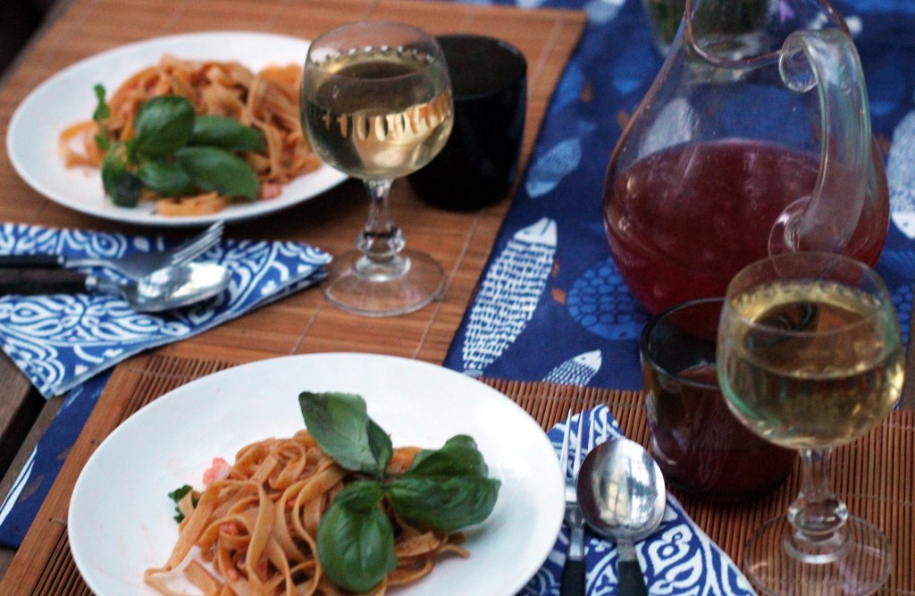 NAUTIMME PASTAHERKUN ILLAN HÄMÄRTYESSÄ ULKOSALLA