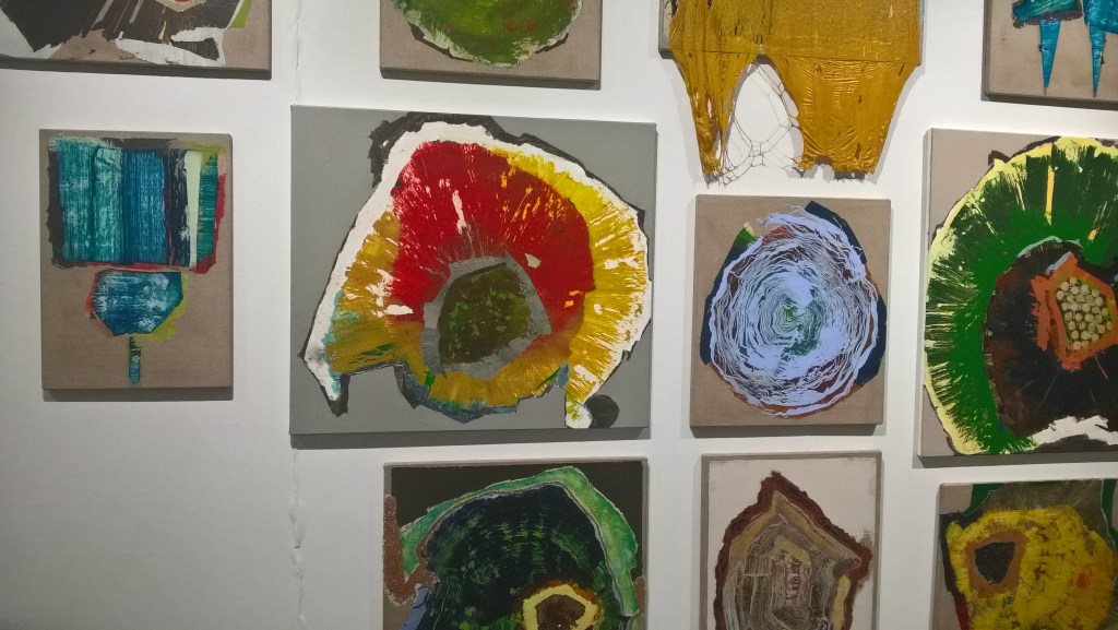 Minun valintani oli kelta-punasävyinen teos sarjasta Notch. Nimesin sen oitis veriappelsiiniksi. Kirjoitin, että kuvassa oli kuin oma elämäni. Värikäs, monikerroksinen, iloinen mutta jossain syvällä huolen möykky. Tausta tasainen arkipäivä.