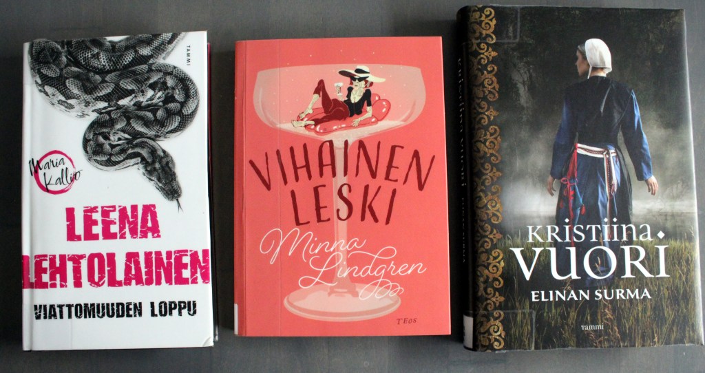 Varasin Minna Lindgrenin uusimman kirjan keväällä. Jono oli käsittämättömän pitkä. Tänään sain kirjan käteen. Laina-aika on vain kaksi viikkoa, joten kiirettä pitää. Löysin samalla käynnillä kaksi muutakin kiinnostavaa kirjaa. Kiirettä pitää.