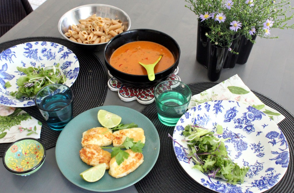 Tarjosin jo kolmatta kertaa Korfun matkamme jälkeen kreikkamakuja. Alkuruoka oli sama tuttu: kreikkalaista fetajuustosalaattia, saganakirapuja ja paistettua juustoa, nyt sitä halloumia.