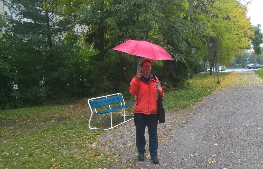 Säätiedotus lupaa puolen viikon maissa jopa 20 astetta lämmintä. Tänään maanantaina kuitenkin satoi. Kävelimme aamulla katsastamaan kirjaston väliaikaiset tilat Vetterissä. Pienet olivat, mutta kodikkaat. Pääkirjasto on remontissa ties kuinka kauan. Onneksi tilaaminen netin kautta pelittää.