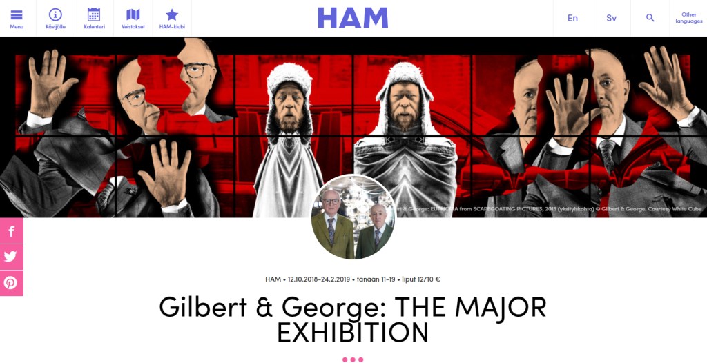 Brittiläisen taiteilijaparin Gilbert & Georgen näyttely THE MAJOR EXHIBITION on heidän ensimmäinen merkittävä näyttelynsä Pohjoismaissa kahteenkymmeneen vuoteen.