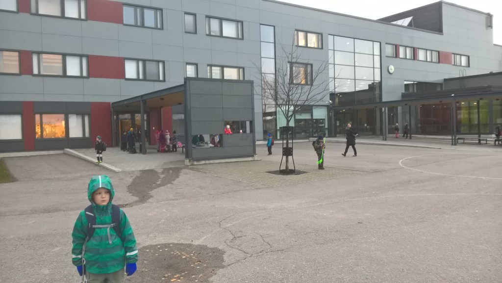 Saattelin Otson yhdeksäksi Vanttilan kouluun. Ehdimme täpärästi ennen sateen alkamista. Minä riensin tihkusateessa junalle ja ehdin sopivasti päivystämään kello 11 AkvArt galleriaan Humalistonkadulle. Onneksi helsinkiläiset eivät pelästyneet ankeaa säätä. Vierailijoita kävi päivän mittaan mukavasti.