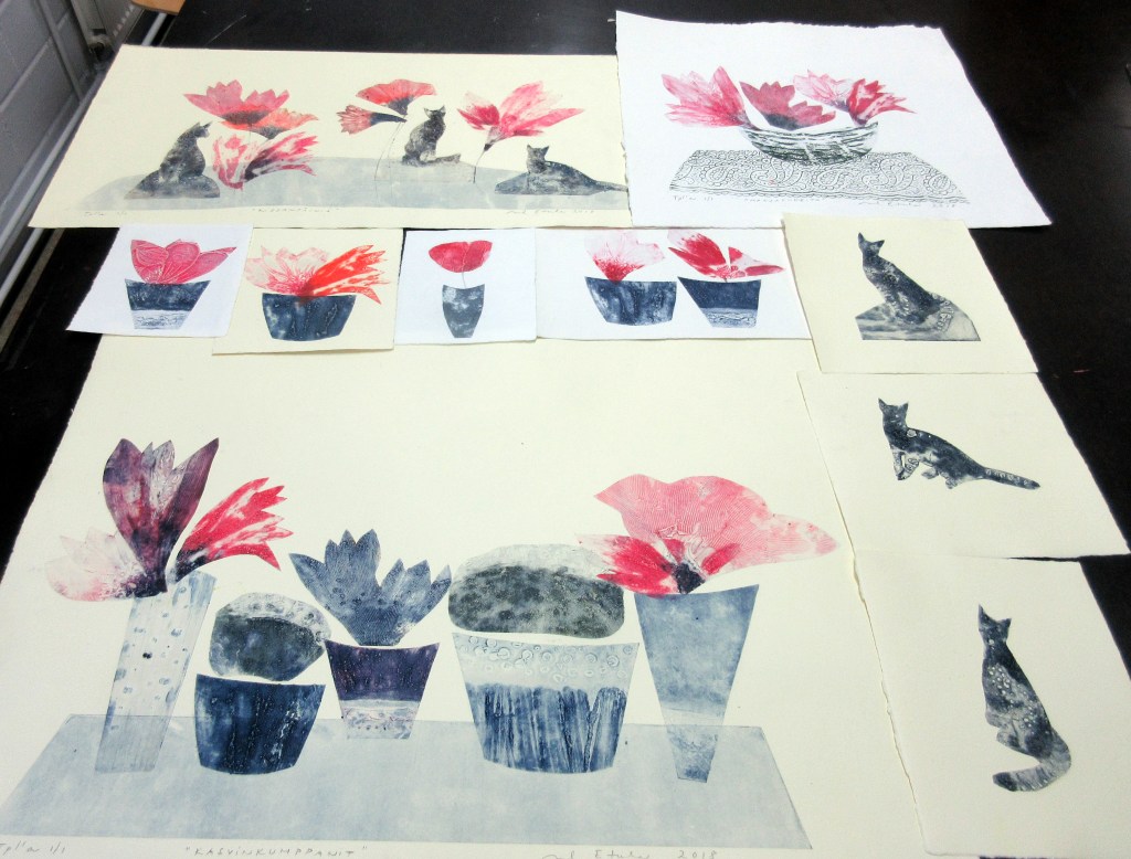 Minä sain jännittää loppumetreille asti, sillä olin joukon viimeinen. ”Hyvä että edes yksi teistä keksi leikata offsetpeltiä muotoon”, Anne kommentoi. Sain positiivista palautta – samoin kuin kaikki muutkin. Seuraavaksi jännitän arvosanoja – samoin kuin kaikki muutkin.