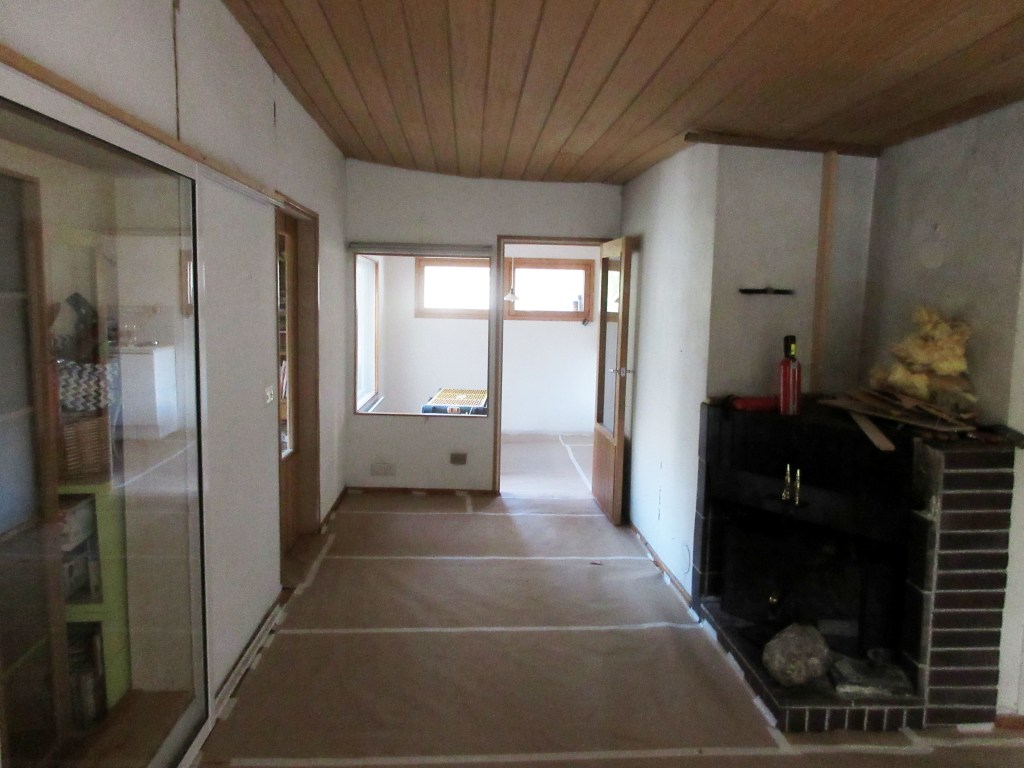 Sunnuntaipäivä vierähti mökillä. Maa oli puhtaan valkoinen, kun saavuimme remonttihommiin. Nyt lattiat on peitetty suojapapereilla ja molemmat eteisetkin typötyhjät. Kelpaa kirvesmiehen tulla hommiin.