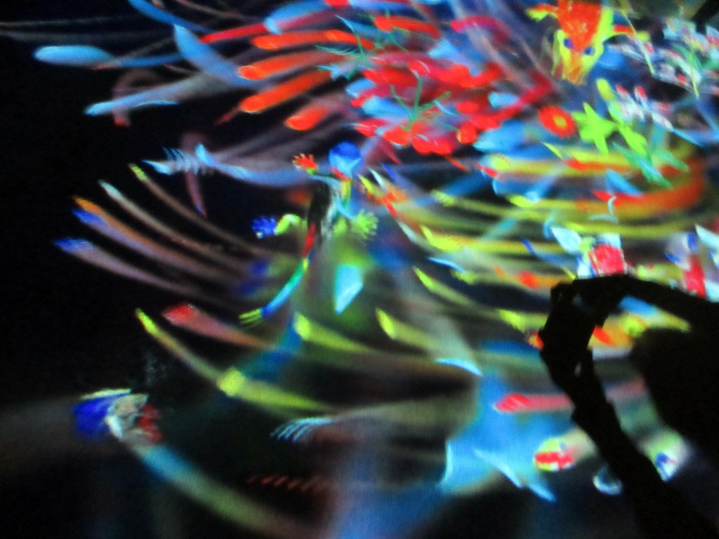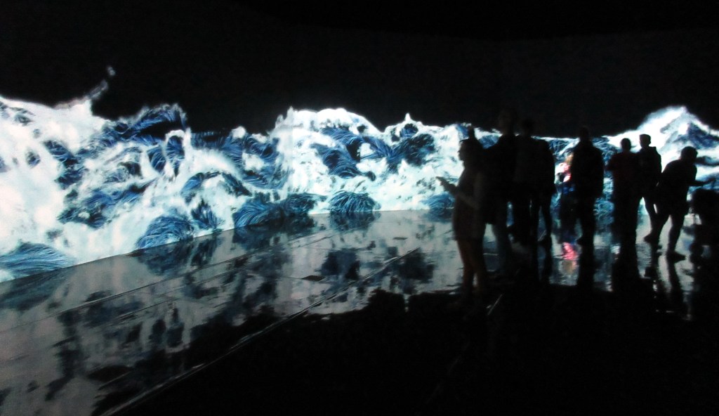 Niin nytkin. Olin häikäistynyt, kun astuin sisälle Amos Rexin virtuaalimaailmaan. Olen liikkunut paljon Euroopan ja Aasian taidemuseoissa, mutta tämän vertaista en ole ennen kokenut. Ensimmäisessä salissa valtameri aaltoili siihen malliin, että seuralaiset pelkäsivät tulevansa merisairaiksi.