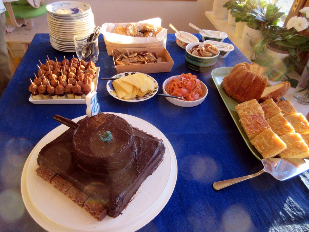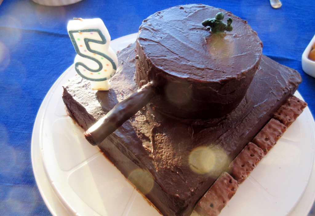 Lauran saavutus näissä juhlissa oli päivänsankarin toivoma panssarivaunukakku. Olemme nähneet paloautoja, poliisiautoja ja tukkirekkoja aikaisemmissa juhlissa.
