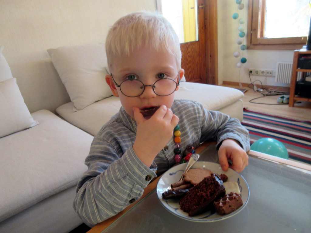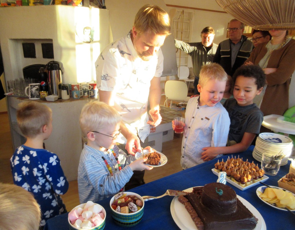 Visan viisivuotisjuhlissa oli menoa. Pikkupoikia oli talo täynnä ja vauhtia riitti. Pikkutyttöjäkin oli, mutta he olivat vanhempiensa luona turvassa, kun pojat juoksivat ja mekastivat.