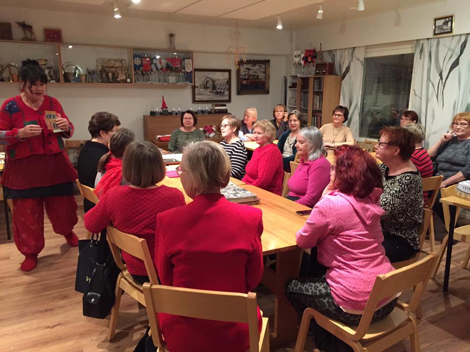 Olen taas kerran jouluaskartelun lumoissa. Osallistuin Linnan Marttojen askarteluiltaan. Hämeenlinnassa tuiskusi lunta kun kävelin Saaristenkadulle Karjalapirtille. Siellä tuoksui kahvi ja tuoreet joulutortut.